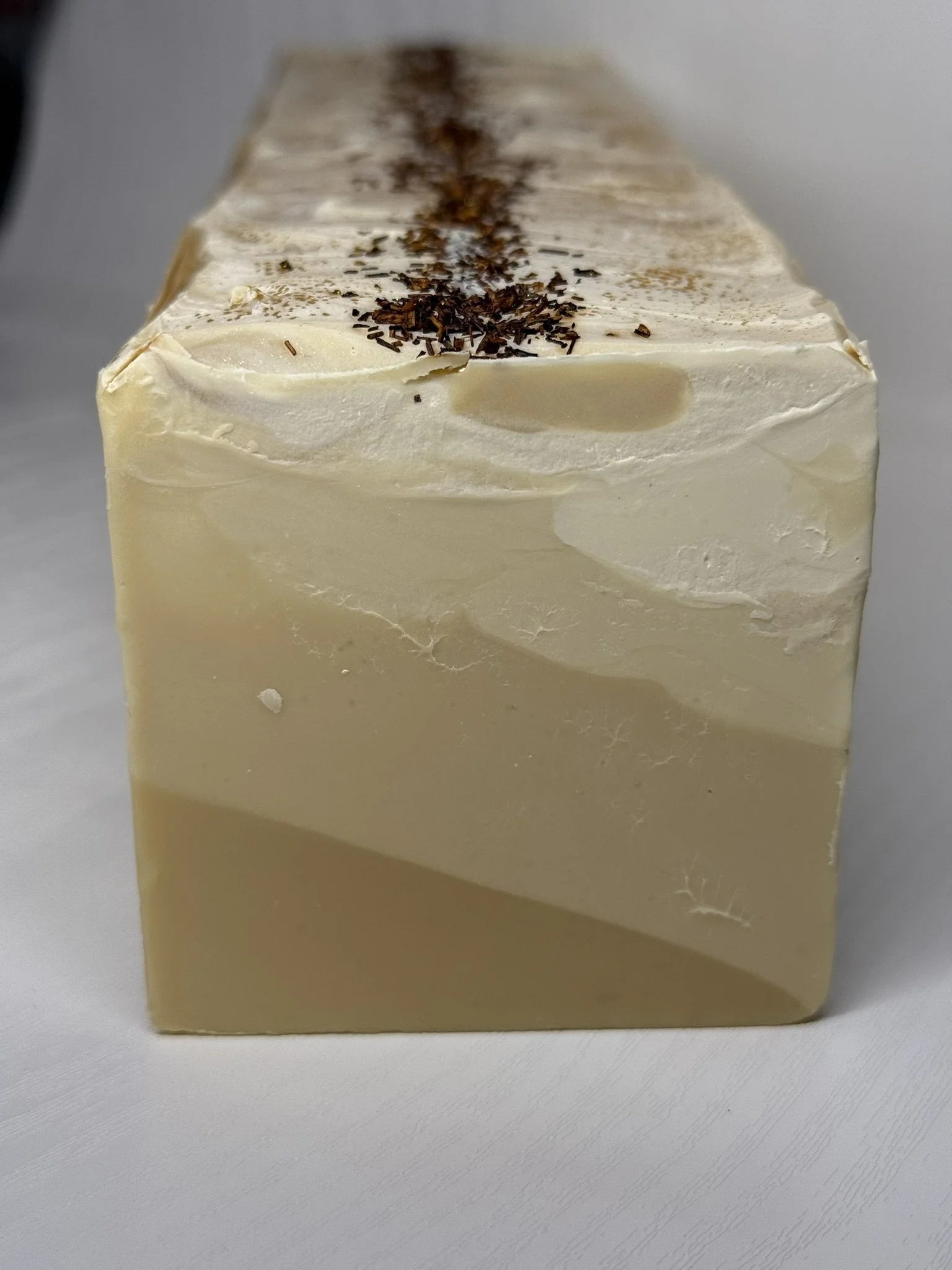 Rooibos tea is used both as a skin conditioner and natural colorant. It has a natural, earthy color that can be incorporated into the soap's appearance. Additionally, rooibos tea is believed to have soothing effects, potentially reducing irritation and redness, and may even help with skin conditions like eczema and acne